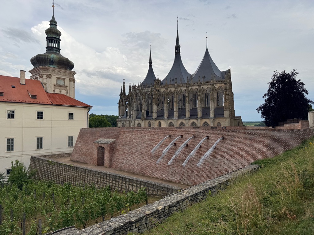 View to St. Barbara’s Cathedral. This view matches an image in the rules of the Kutná Hora board game. |
